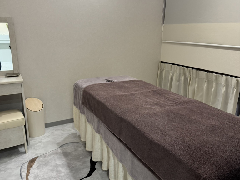 カーテン仕切りではない完全個室のため、プライバシーに配慮した施術が可能です。周りを気にせず施術に集中でき、お客様にとっても安心感があり、リピーターにも繋がりやすい環境です。